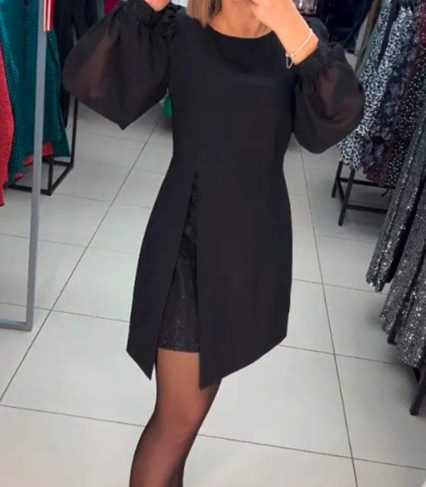 Ophélie apporte une allure soignée et prête pour les moments spéciaux, avec une coupe fluide qui met immédiatement en valeur. Les manches à volume créent un joli contraste et donnent un caractère affirmé, idéal pour les soirées du saison des fêtes. Sa longueur au-dessus du genou et son tombé léger offrent une sensation agréable, simple à porter du début de la soirée jusqu’aux derniers instants. Un modèle facile à associer, toujours adapté aux occasions festives.